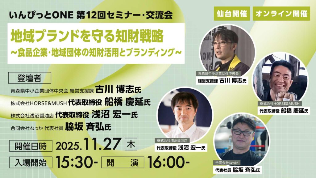 いんぴっとONE 第12回セミナー・交流会地域ブランドを守る知財戦略~食品企業・地域団体の知財活用とブランディング~